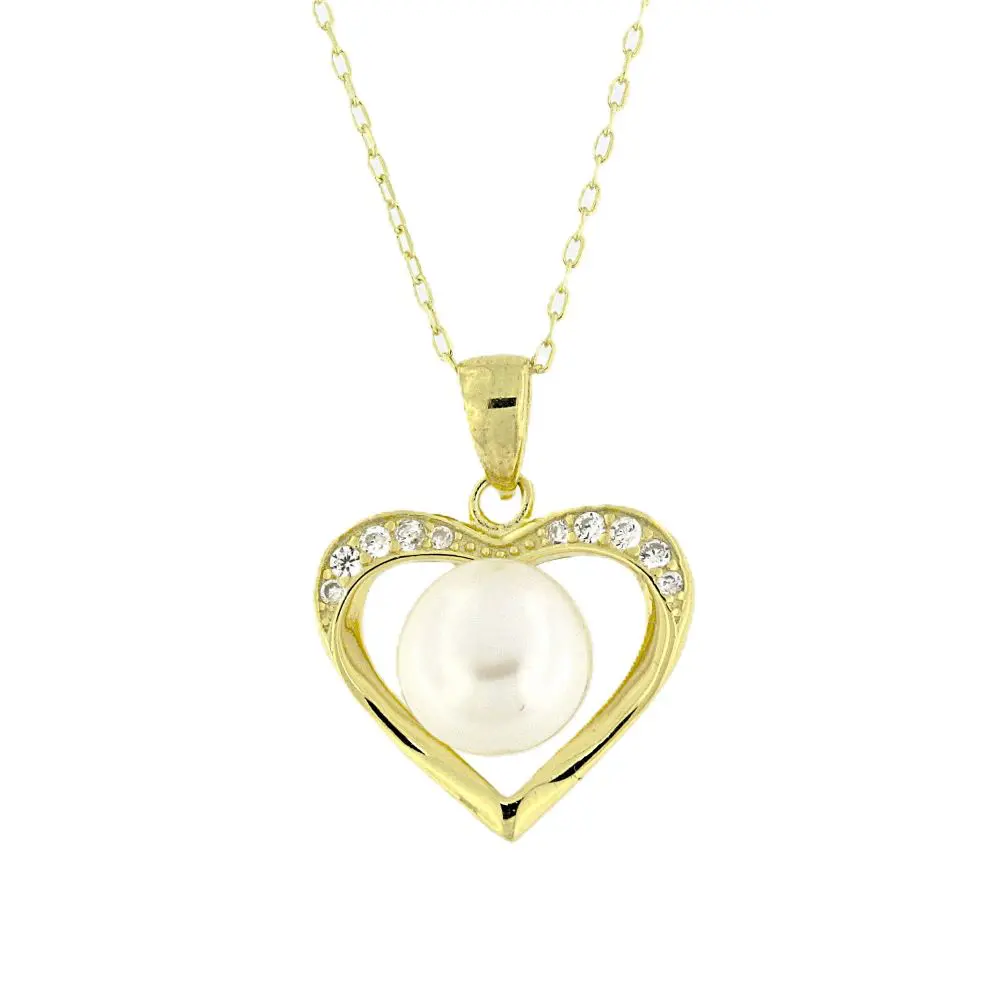 Prata de Lei ,925 Dourada com Zircónias e Pérola