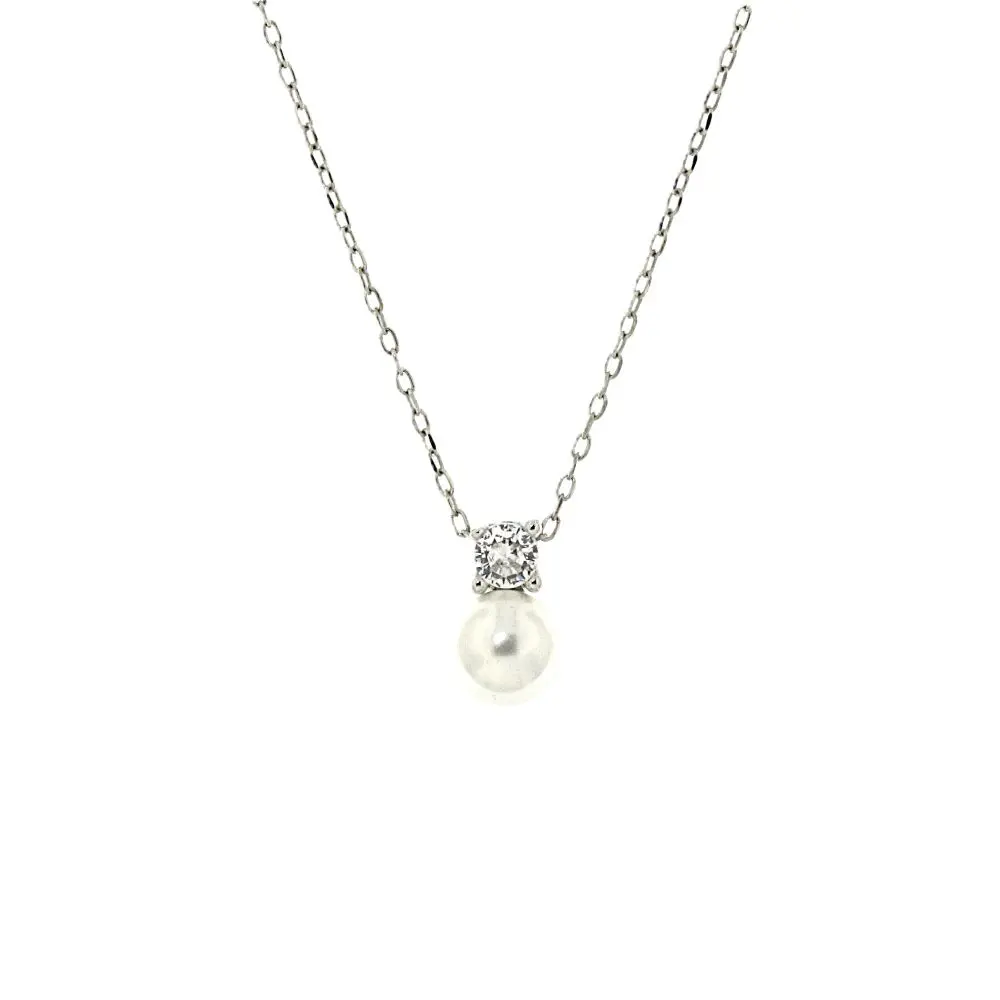 Prata de Lei ,925 Rodiada com Pérola e Zircónia