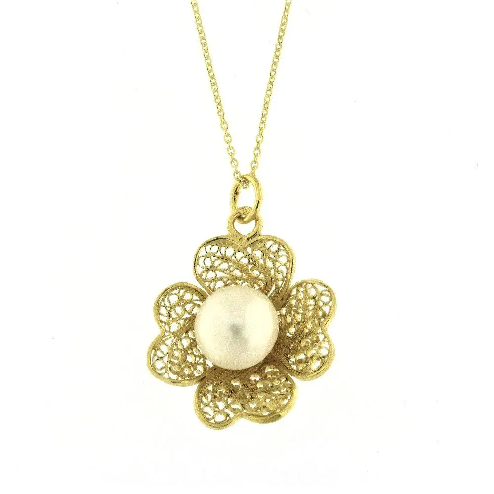 Filigrana Artesanal Certificada em Prata de Lei ,925 Dourada com Pérola